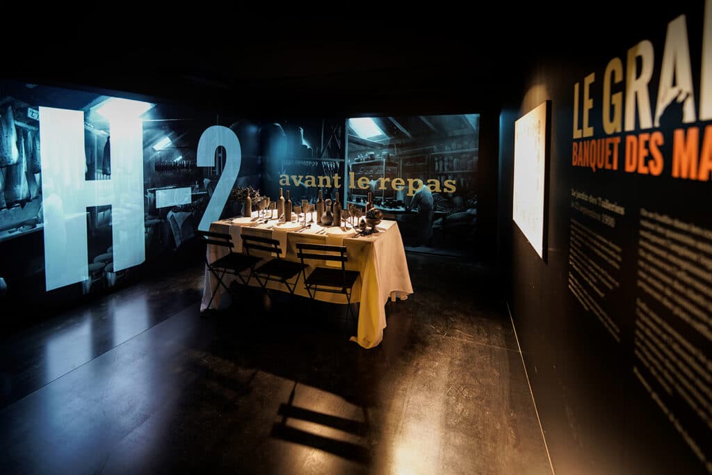 Neodigital a imaginé une installation immersive de 2 murs projetés en 270°, mise en scène autour d’une table dressée, pour faire ressentir au visiteur l’intensité d’un moment hors du commun. Un format court, puissant, et pensé pour s’intégrer naturellement dans un espace muséal.
